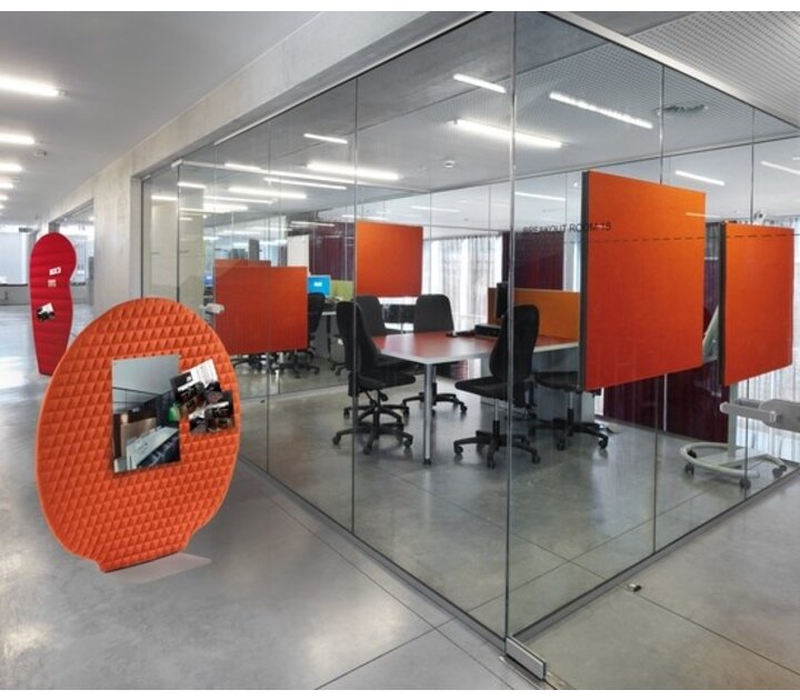 Panneau acoustique et séparateur de pièce: travaillez sans interruption de vos collègues, créez un mur flexible entre les lieux de travail. Polyvalent par nature, il combine pas moins de trois facteurs: l'absorption acoustique, le design et une surface à coller!