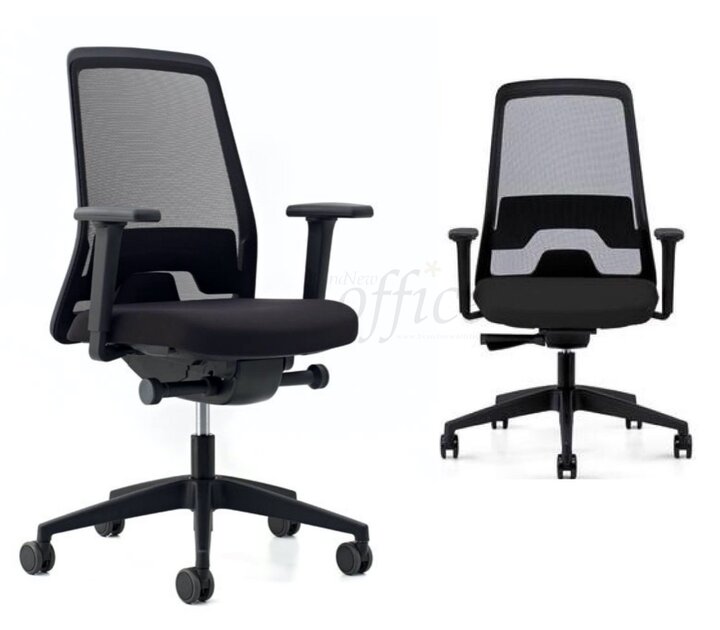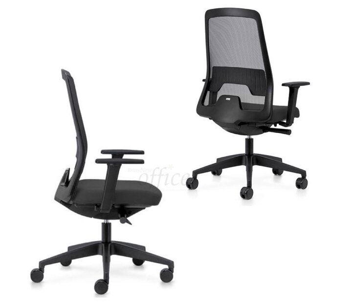 Caractéristiques techniques : mécanisme synchrone blocable(Technologie synchrone avec contrôle du poids), réglage individuel en fonction du poids du corps, réglage en hauteur par vérin a gaz, Assise ajustable en profondeur, soutien lombaire, accoudoirs en T ajustable(4D) en hauteur, largeur et profondeur.