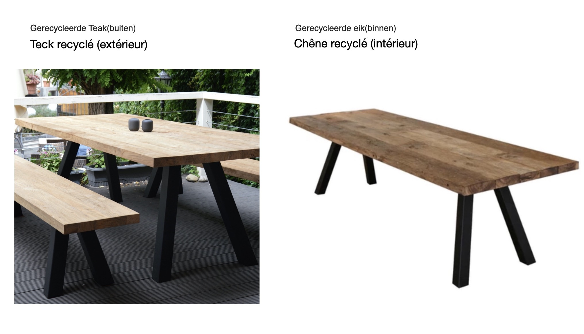 Si la table est en permanence à l'extérieur et non sous un auvent ou une terrasse, il est recommandé de commander la version en teck de cette table. Cette table en bois teck a une teinte légèrement plus rouge, mais deviendra également plus gris avec le temps.