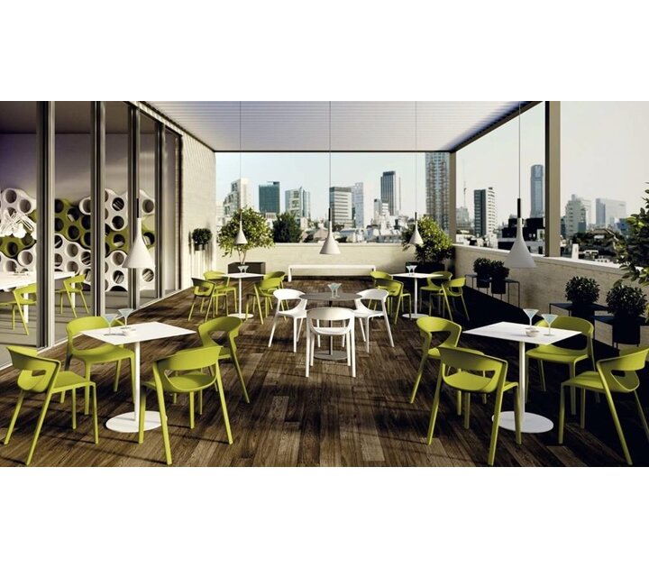 Elle convient à un large éventail d'utilisations: le Horeca, les cafétérias, les terrasses ou même comme chaises visiteurs dans des bureaux, ou dans des salles d'attentes, de conférences. la chaise est empilable jusqu'à 6 pièces et peut également être utilisé pour l'extérieur. En raison de son prix et de qualité concurrentiel, les chaises sont souvent utilisés pour des projets.