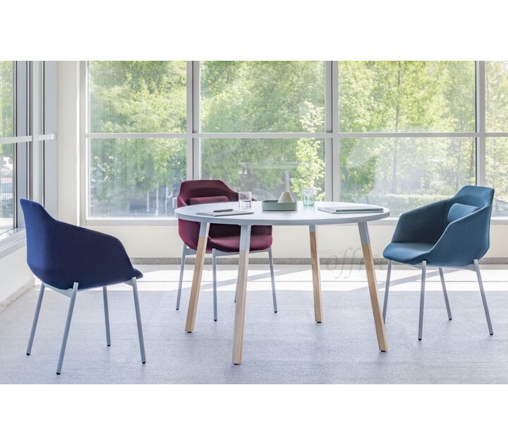 Ces tables carrées aux pieds en frêne sont utilisées par les clients de l'entreprise et le personnel interne. Les tables doivent donc être fonctionnelles pour pouvoir être combinées avec d'autres tables ovales ou rcarrées. Les séries de tables Ogi Wood sont particulièrement remarquables car elles peuvent équiper aussi bien les grands espaces que les petits espaces.