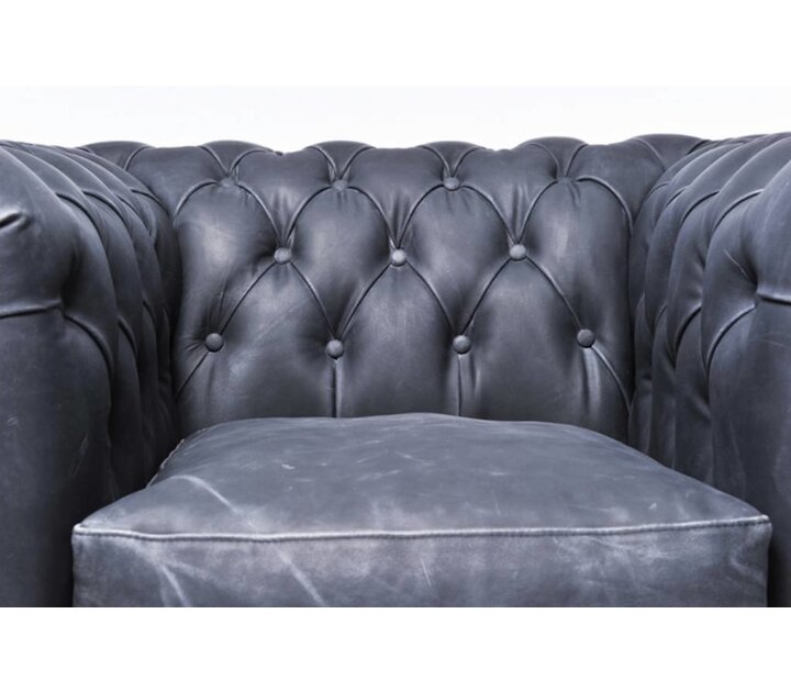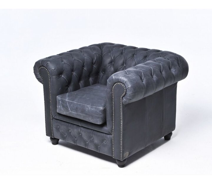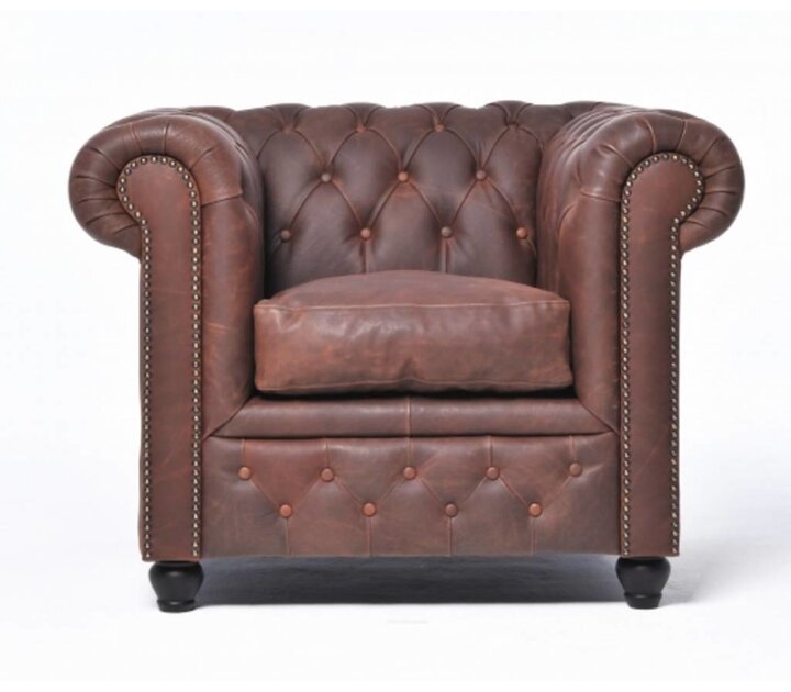 De klassieke Chesterfield bank dateert van 1770 en is sindsdien onveranderd gebleven waardoor het zijn charmante, typisch Britse, karaktervolle uitstraling behouden heeft. Kenmerkend voor de Chesterfield banken zijn de welvingen van de rug- en armleuningen, het gecapitonneerde ruitpatroon doordat de bank afgezet is met diverse knopen en uiteraard de sierlijke afwerking middels kopspijkers. Chesterfield staat voor de verwerking van zeer hoogwaardige fauteuils en zetels in kwalitatief leder en het creëren van duurzame en klassieke meubelen. In onze eigen fabriek en leerlooierij worden The Chesterfield Brand meubelen die u op onze website ziet staan op een eerlijke en traditionele manier geproduceerd. De meubelen van dit originele merk worden ambachtelijk en handmatig vervaardigd. Als bewijs krijgt u bij elk meubel van The Chesterfield Brand een Certificaat van 'echtheid'! Alle uitvoeringen van de Chesterfield Original zijn gemaakt van een hoogwaardige kwaliteitsleer. Deze uitvoeringen kennen kleine verschillen, verschillen die met name in het leersoort, de kleur en de uitstraling en de opbouw van de kussens zitten. Indien uw wenst kunnen we zelfs Chesterfield banken op maat laten maken op aanvraag. Chesterfield Vintage fauteuil
