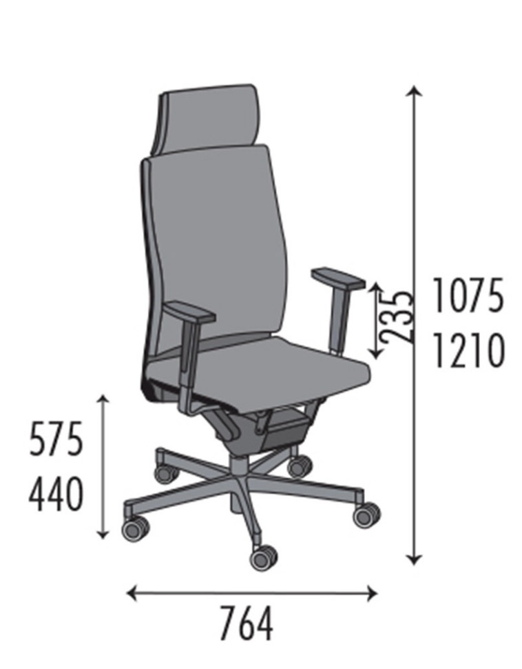 - Leren stoel met hoge rugleuning en met polyurethaan bedekte hoofdsteun en armleuningen