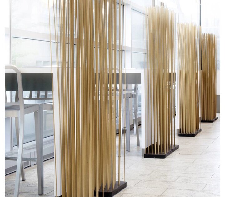 Deze ruimteverdeler is daarom ideaal voor het creëren van een gevoel van privacy in een tuin of op een balkon zonder het gevoel van vrijheid te verliezen dat typisch is voor open ruimtes. Je kunt het echter ook binnenshuis gebruiken om het uiterlijk of de inrichting van een kamer of kantoorruimte helemaal naar eigen smaak aan te passen. Met Sticks kunt u steeds opnieuw uw eigen ruimte creëren.