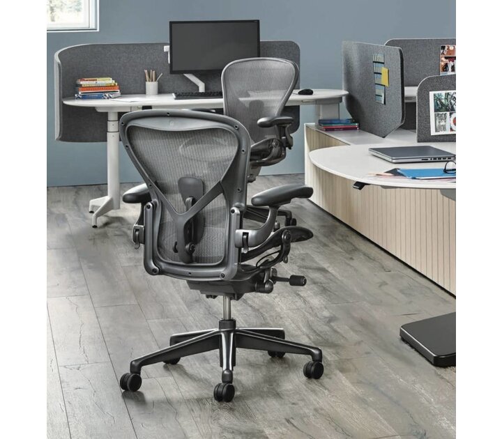 De Herman Miller bureaustoelen bieden duurzame oplossingen voor het inrichten van werkplekken en is een trendsetter op het gebied van ergonomie. Herman Miller is marktleider op het gebied van hoogwaardige Cradle to Cradle gecertificeerd kantoormeubilair en hun producten worden ontworpen met het oog op de gebruikers en specifieke problemen met betrekking tot kantoormeubels. De Herman Miller Aaron bureaustoel staat te tentoongesteld in de Design Collection van het museum of Modern Art in New York! De ontwerpers Don chadwick en Bill Stumpf leverden de Amerikaanse stoelens specialist Herman Miller een meesterstuk door één van de comfortabelste bureaustoelen ter wereld te ontwerpen. Verder staat Herman Miller bekend om hun innovatieve kracht, kwaliteit en het duurzaam produceren. Brand New Office heeft de beste stoelen van Herman Miller voor u geselecteerd; Aeron standaard, Aeron Deluxe, Mirra en de Embody bureaustoel. Heeft u een product van Herman Miller niet gevonden? Contacteer ons en wij bestellen het nodige voor u.Herman MillerAeron Remastered Deluxe Graphite bureaustoel
