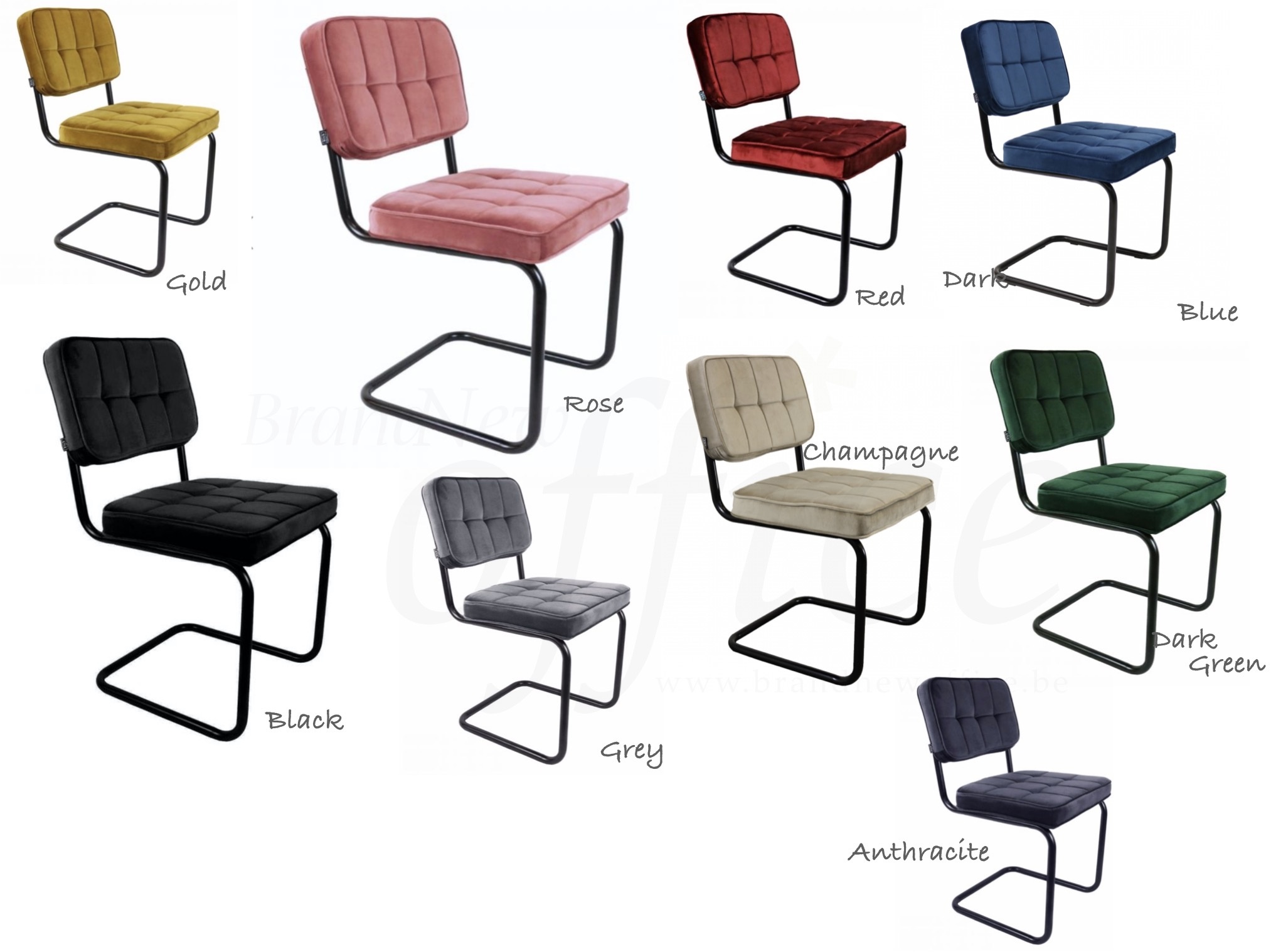 Het zwart metalen frame is gecombineerd met comfortabele zittingen die zijn bekleed met een velours stof in diverse trendy kleuren. Het sledeframe zorgt voor het ultieme zitcomfort: SO THIS IS WHERE STYLE MEETS COMFORT! De velours stoel is te bestellen in verschillende kleuren zoals goud, roze, groen, zwart, rood, grijs en nog veel meer ...