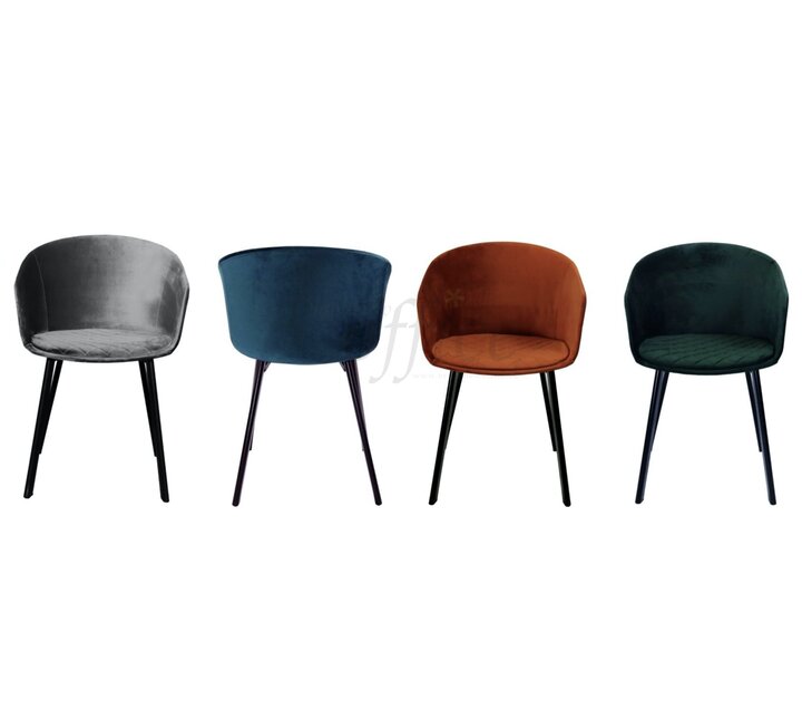 en vindt zijn plaats aan elke eettafel dankzij de combinatie van een metalen onderstel met de fluwelen zitting. Daarnaast heeft de stoel een genaaid patroon met fluwelen vulling, wat de stoel een luxe uitstraling geeft. Met zijn fluwelen zitting en stalen structuur is onze Vic-stoel precies wat elk interieur elegant en uniek maakt. Bovendien is elke voet van de basis uitgerust met een dop op elke poot om de grond te beschermen. De fluwelen stoel is te bestellen in verschillende kleuren zoals goud, roze, groen, zwart, rood, grijs en nog veel meer ...