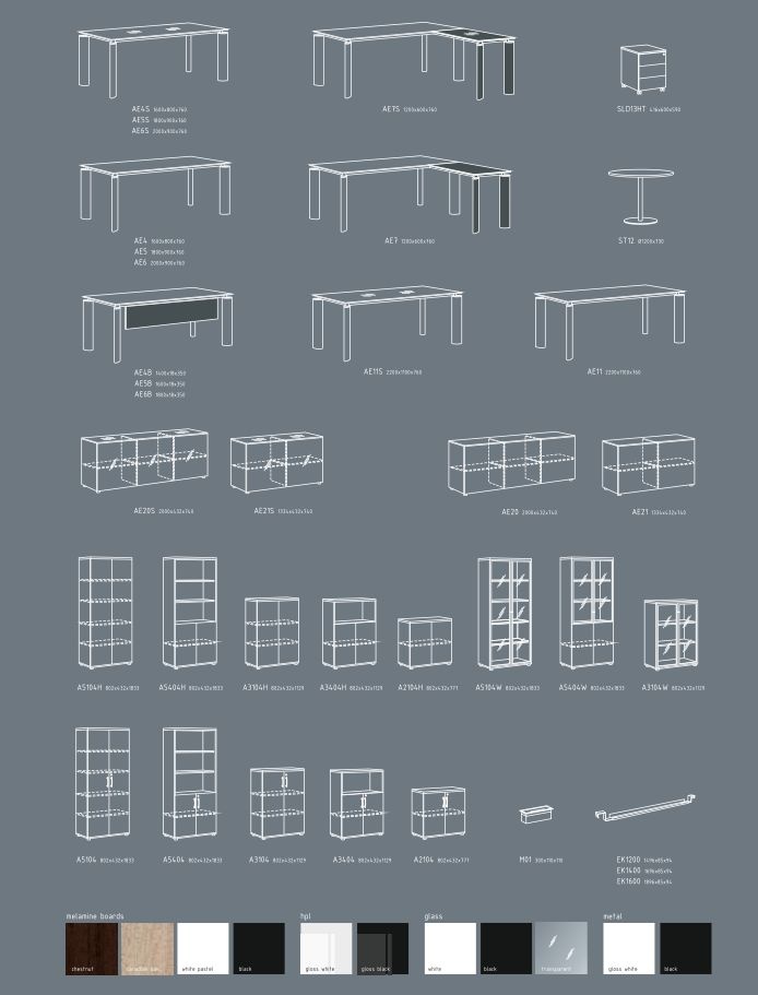 Dit design meubelsysteem van MDD bestaat in verschillende maten vanaf 160cm tot 200cm. U kan het tafelblad bestellen in E1 spaanplaat(wit, wengé, eik of zwart) of in verschillende kleuren glas en altijd afgewerkt met metalen poten in glanzend zwart of wit. Brand New Office kan alles van Mdd aanbieden omdat we 'Premium dealer' van deze systeemmeubel fabrikant zijn.