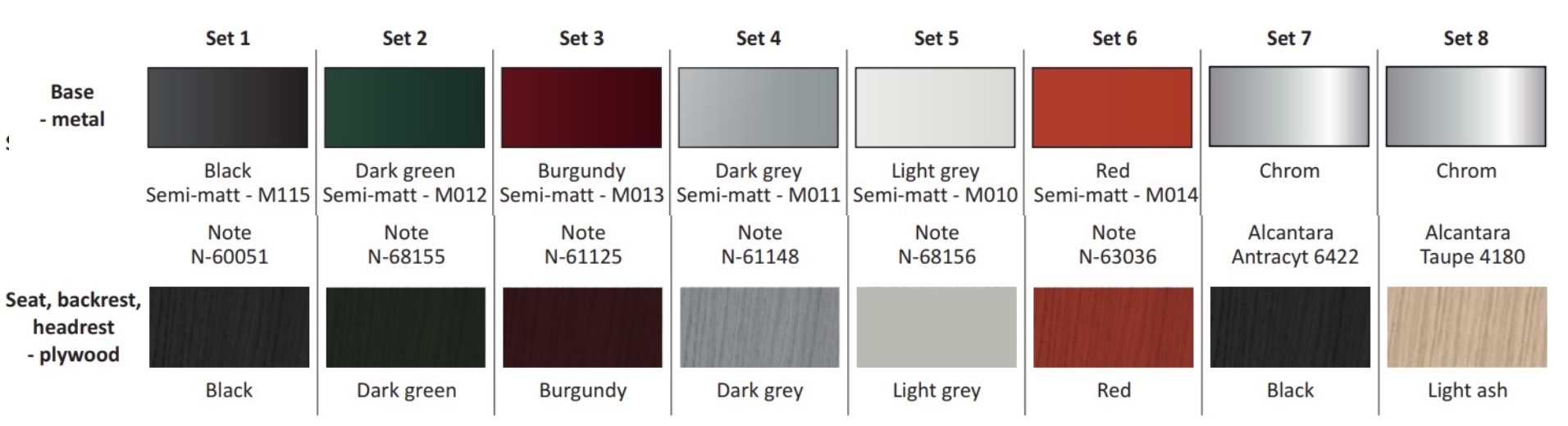 De barkruk is leverbaar in acht verschillende kleurensets bestaande uit Multiplex hout.